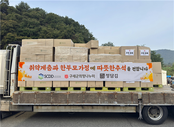 김 전문기업 에스시디디(주) 정담김이 추석을 맞아 구세군 희망나누미와 함께 저소득층과 한부모 가정을 대상으로 김 제품을 기부하며 따뜻한 나눔을 실천했다.