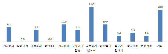 | ▲학교를 다니지 않는 주된 이유(한국청소년정책연구원 제공) |