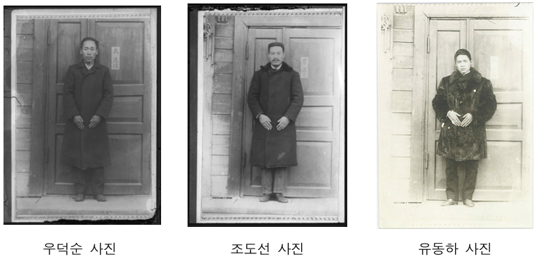 이들은 하얼빈 의거 직후 러시아 관헌에게 체포돼 열흘간 조사를 받은 뒤 일본으로 인계되었으며, 사진은 10월 31일 하얼빈 일본 총영사관 앞에서 촬영된 것으로 추정된다. 포박된 채에서도 결의에 찬 눈빛을 유지한 모습이 고스란히 남아 있다.