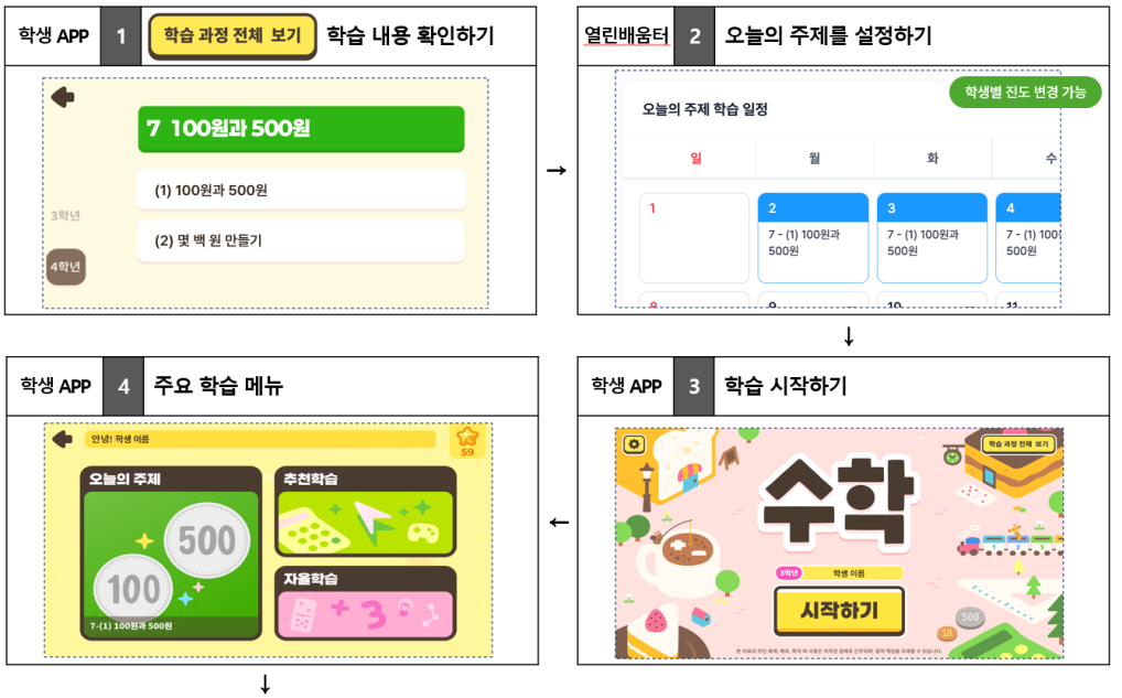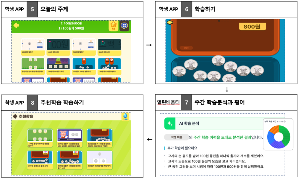 지적장애 학생용 콘텐츠는 추상 개념보다 생활 장면 중심으로 구성됐다. 학생이 문제를 해결하는 과정에서 인공지능이 수행 수준을 분석하고 단계를 나눠 다음 학습으로 이어지도록 설계해, 반복 과정에서도 성취감을 느낄 수 있도록 했다.