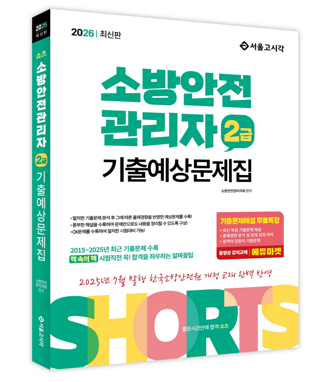 ‘2026 쇼츠 소방안전관리자 2급 기출예상문제집’에 대한 자세한 내용은 서울고시각 공식 홈페이지에서 확인할 수 있다.