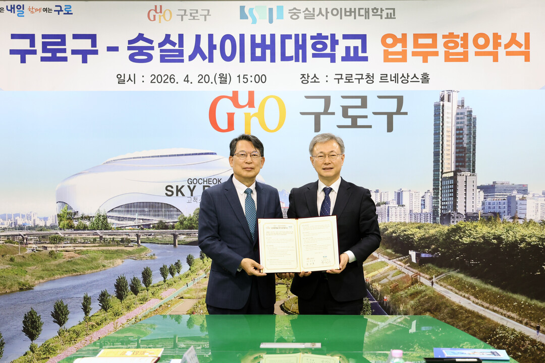 숭실사이버대학교와 구로구청이 지역사회와 대학이 함께 성장하는 평생교육 협력체계 구축에 나섰다. 양 기관은 4월 20일 오후 3시 구로구청 르네상스홀에서 업무협약을 체결하고, 구로구민의 학습 기회 확대와 지역 평생교육 활성화를 위한 공동 협력을 추진하기로 했다.