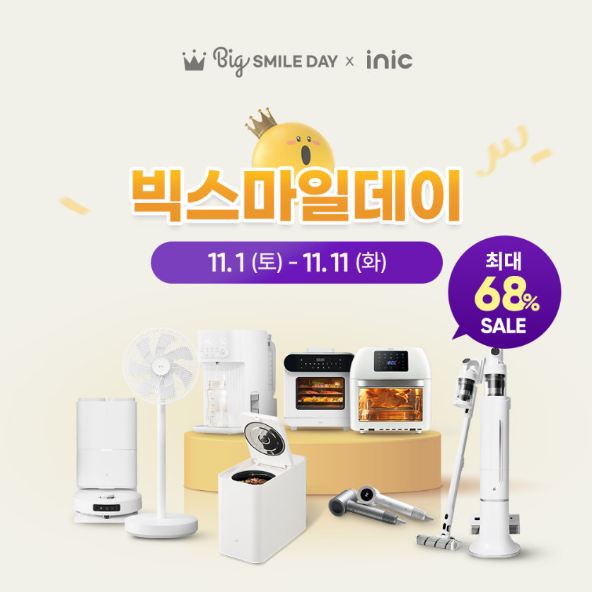 국내 가전 전문 기업 ㈜아이닉(대표 정건영)이 11월 11일까지 열리는 G마켓·옥션 연중 최대 쇼핑 행사 ‘빅스마일데이’에 참여해 판매 호조세를 보이고 있다.
