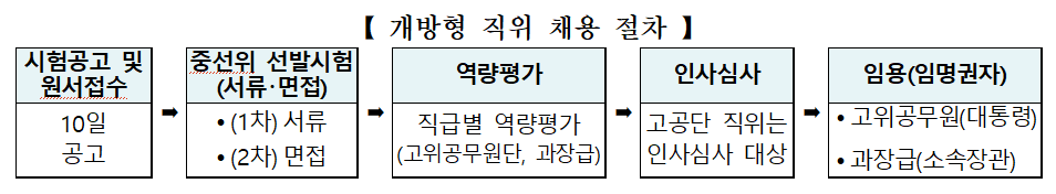 개방형 직위 공고 및 서류접수는 오는 10월 14일까지 진행되며, 세부 자격 요건과 응시 방법은 나라일터(gojobs.go.kr)와 각 부처 누리집 모집공고에서 확인할 수 있다.