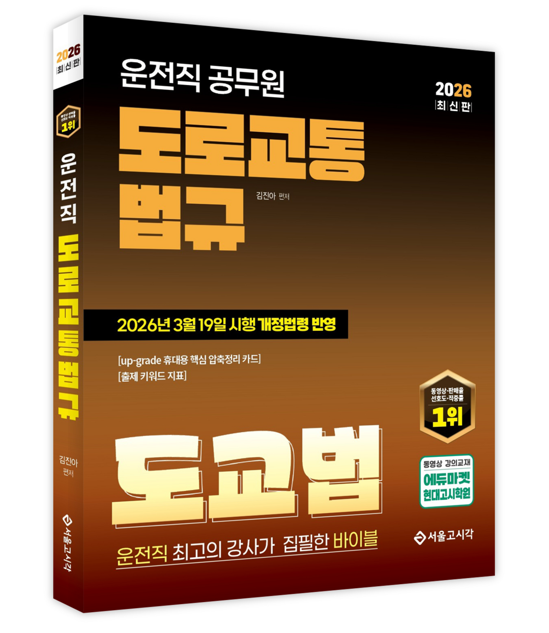 이번 교재는 운전직 도로교통법규 분야에서 오랜 기간 강의를 이어온 김진아 교수가 23년간 전국 각 지역의 기출문제를 심층 분석해 출제 가능성이 높은 핵심 내용을 담아냈으며, 2026년 3월 19일 시행 예정인 개정 법령까지 완벽하게 반영했다.