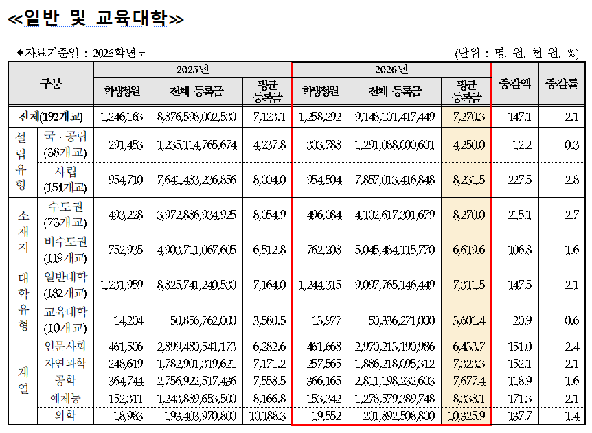 특히 수도권 대학과 특정 계열 중심의 높은 등록금 구조가 이어지면서 교육 기회 격차 문제도 다시 부각되는 분위기다.