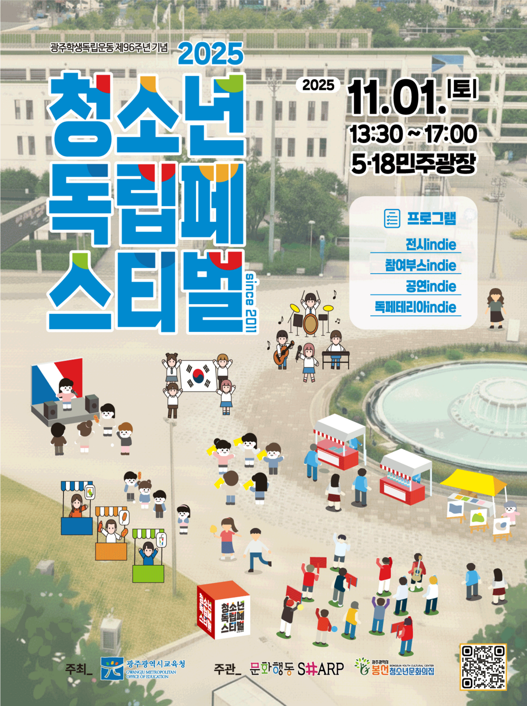전국 학생 항일운동의 도화선이자 우리 민족의 3대 독립운동 중 하나인 광주학생독립운동 제96주년을 기념하는 ‘2025 청소년독립페스티벌’이 11월 1일 오후 1시 30분부터 5시까지 5·18민주광장에서 열린다.