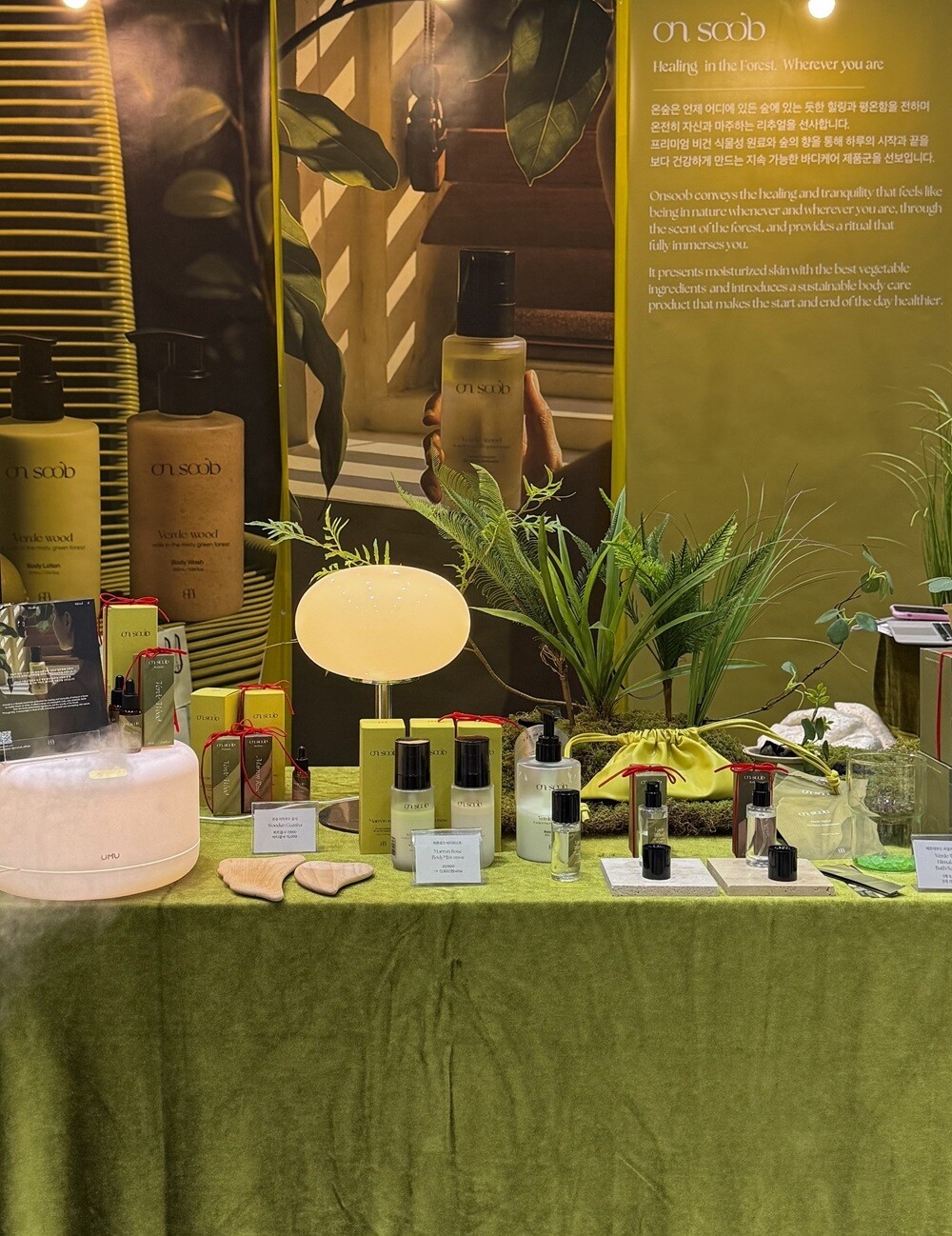 온숲은 이번 전시에서 대표 제품인 ‘포레스트 모먼트 오일 세럼 바디미스트’ 2종을 비롯해 배쓰솔트와 스톤디퓨저, 퍼퓸 등 신규 라인업을 함께 선보였다.