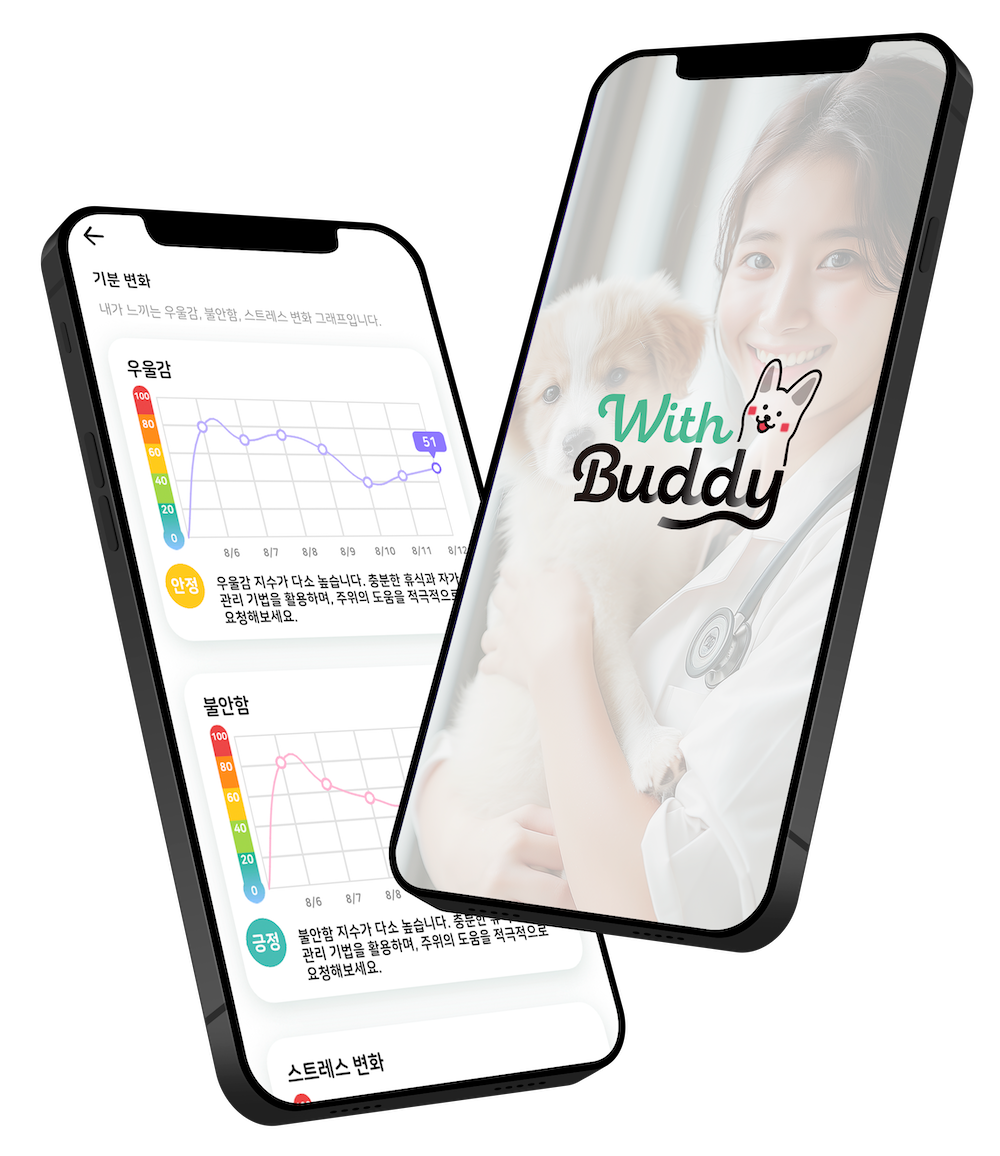 위드버디는 24시간 AI 상담, 감정일기 자동 기록, 명상·호흡 콘텐츠, 우울·불안 지표 모니터링 등을 갖춘 기관 전용 SaaS 서비스로, 단순 모바일 앱을 넘어 대학 단위 프로그램 형태로 운영된다.
