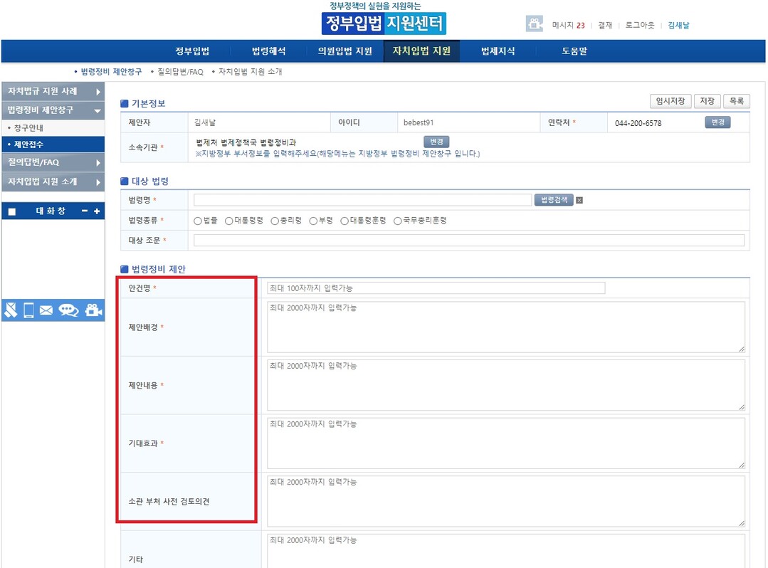 법제처는 12월 29일부터 중앙 및 지방정부 공무원이 이용하는 정부입법지원센터에 ‘법령정비 제안창구’를 개설·운영해 지방정부가 법령 정비가 필요하다고 판단하는 사항을 상시 제안할 수 있도록 한다고 밝혔다.