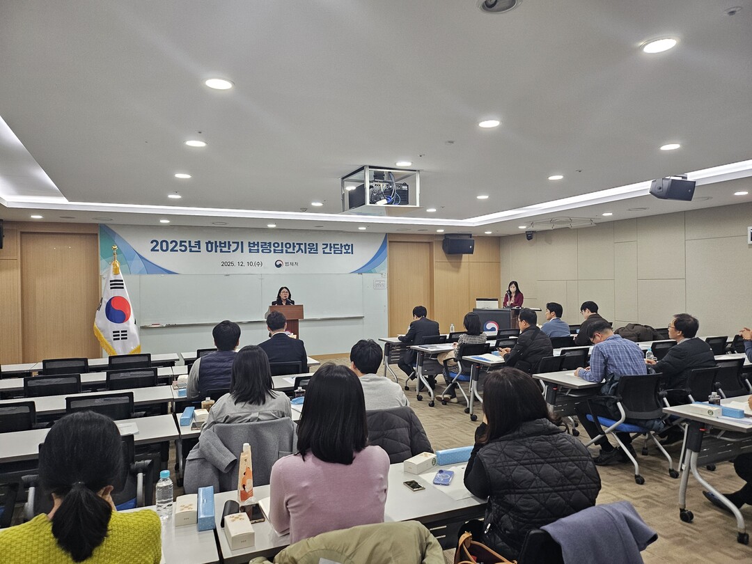 법제처(처장 조원철)는 10일 정부세종청사에서 고용노동부, 지식재산처, 우주항공청 등 19개 부처의 법제 담당 공무원 40여 명이 참여한 가운데 ‘2025년 하반기 법령입안지원 간담회’를 개최했다고 밝혔다.
