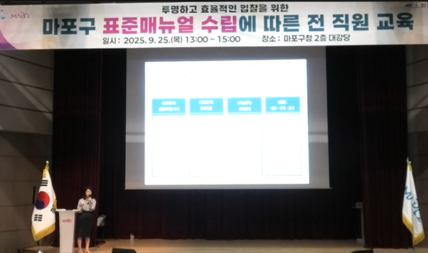 이번 교육은 레디투컨설팅이 수행한 ‘마포구 입찰업무 표준매뉴얼 수립용역’의 일환으로, 지자체 최초로 과업지시서 표준화 매뉴얼을 구축하고 이를 실무자에게 직접 전달하기 위해 마련됐다.