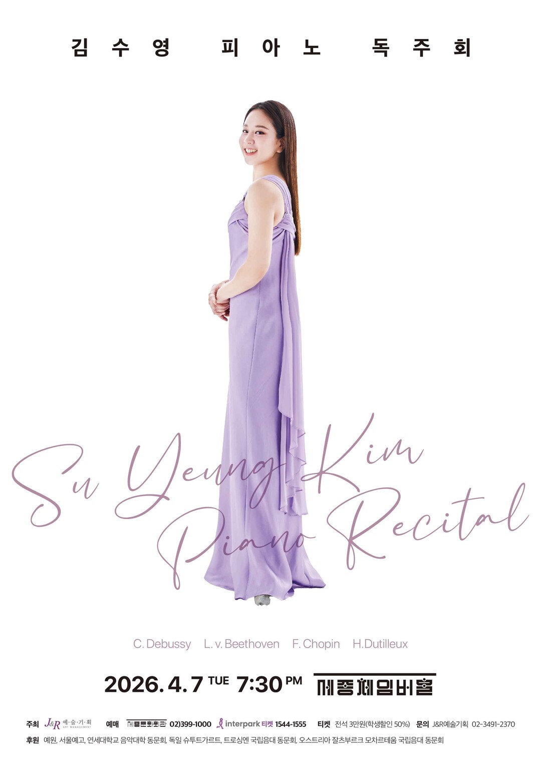 탁월한 테크닉과 깊이 있는 음악성으로 유럽과 국내 무대를 오가며 주목받아온 피아니스트 김수영이 오는 2026년 4월 7일 오후 7시 30분, 세종문화회관 체임버홀에서 독주회를 연다.