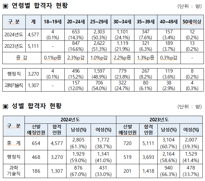 평균연령 28.9세...여성합격자(38.7%)는 전년(39.3%)대비 소폭 하락